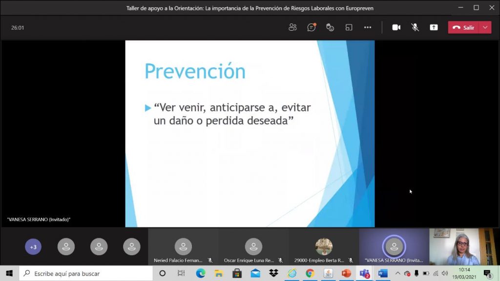 Colaboración desarrollada por parte de Vanesa Serrano, para que las personas participantes de los diferentes proyectos del Plan de Empleo de Cruz Roja Española, conozcan la importancia de la prevención de riesgos laborales en el mercado de trabajo.