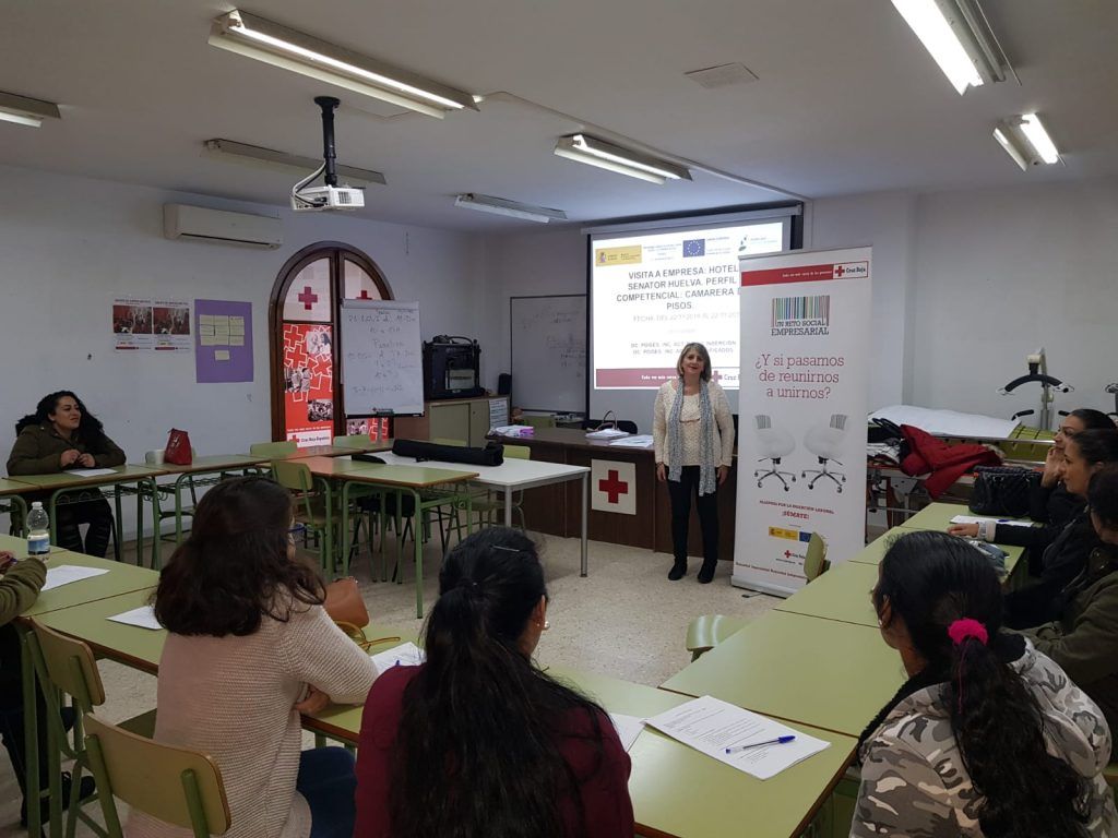 El Plan de Empleo de Cruz Roja Española en Huelva, en colaboración con la empresa Hotel Senator Huelva, desarrolla una visita a las instalaciones de dicha empresa para conocer de primera mano las competencias necesarias para desarrollar el trabajo de limpieza en instalaciones hoteleras. A través de Rosa Domínguez González, Gobernanta del Hotel Senator de Huelva, la empresa desarrolla una sesión de orientación grupal sobre el perfil competencial de limpieza en instalaciones hoteleras, en la que dio a conocer al alumnado cuales son las habilidades y destrezas necesarias para el desarrollo de la ocupación de manera satisfactoria.