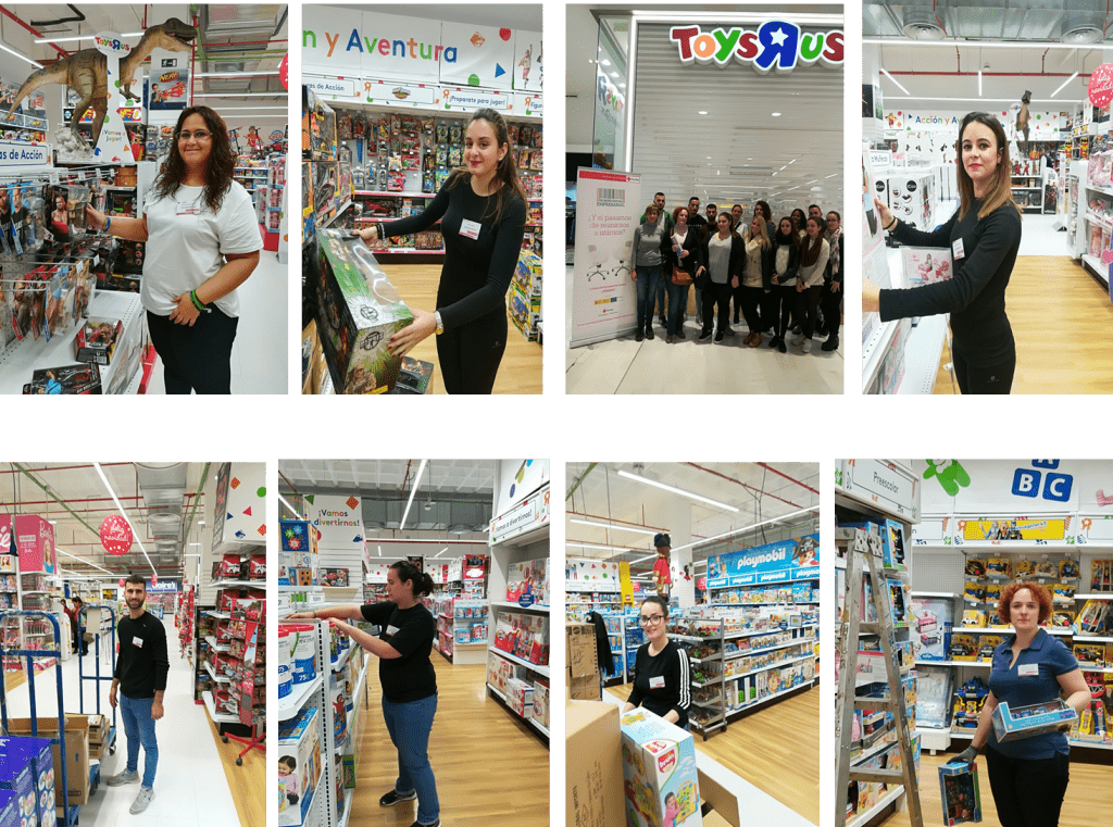 TOYS´R´US colabora con el Proyecto RETO SOCIAL EMPRESARIAL de Cruz Roja en Sevilla. Dicha colaboración ha supuesto que el 85% de las personas formadas en el Curso de «Caja y Reposición» cuente con un empleo durante la campaña de navidad en diversas tiendas de la marca. Tras la realización de Prácticas formativas no laborales en la empresa, estas personas cuentan con una oportunidad importante para desarrollar las competencias adquiridas en el curso.