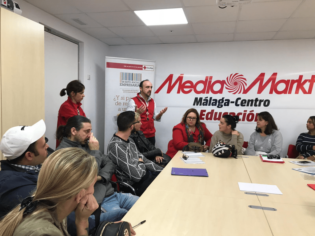 A esta iniciativa se ha unido la empresa MEDIA MARKT Málaga, ofreciendo un taller denominado “Un día en el oficio de auxiliar de comercio», al que han asistido diecisiete personas participantes adscritos a diferentes Proyectos de Empleo de Cruz Roja Española en Málaga. Dicho taller ha sido impulsado y gestionado desde el Proyecto Reto Social Empresarial y lo ha impartido el Gerente de la empresa, Juan Carlos Campos y la Responsable de Recursos Humanos y Administración Inmaculada Hidalgo Conejo.