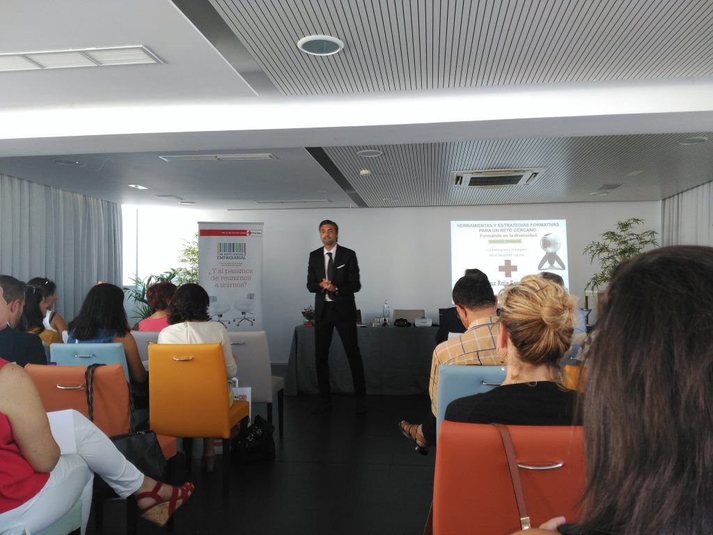 El pasado 20 de septiembre, Cruz Roja Española en Granada desarrolló una jornada de formación con empresas y asociados de la provincia. A través del proyecto “Reto Social Empresarial: Alianzas por la Inserción laboral” que desarrolla el Plan de Empleo de la Provincia, se pretenden trabajar líneas de colaboración con el tejido empresarial. Alberto Benito Rodríguez impartió una charla denominada ‘HERRAMIENTAS Y ESTRATEGIAS FORMATIVAS PARA UN FUTURO CERCANO’, sobre sus conocimientos en nuevas tecnologías aplicadas a la formación.
