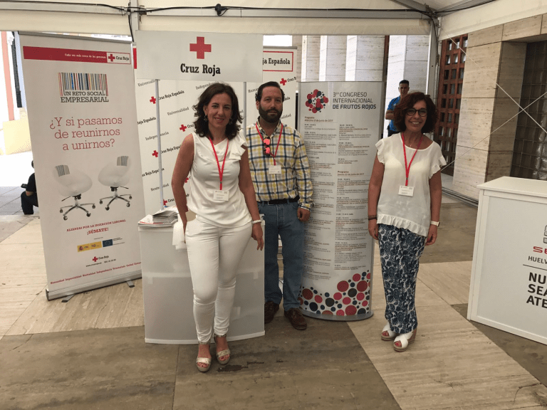 Stand del Proyecto Reto Social Empresarial de Cruz Roja en Huelva, presente en el III Congreso Internacional de Frutos Rojos.