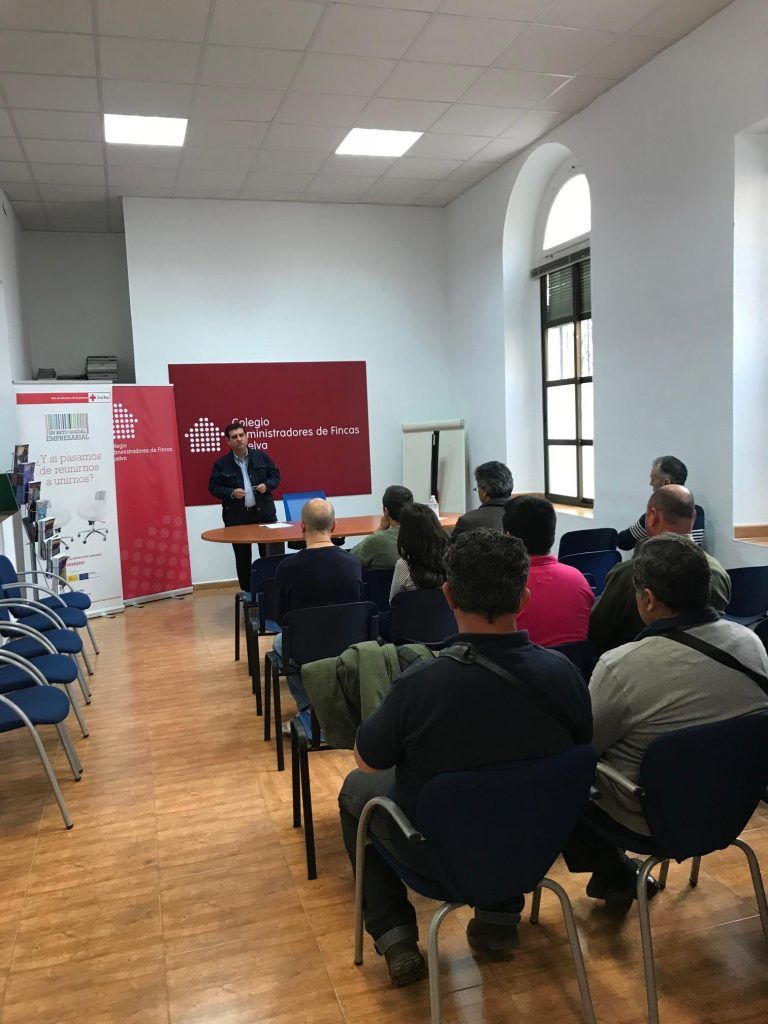 El pasado 20 de abril, las personas participantes de los distintos proyectos de empleo, que Cruz Roja Española en Huelva desarrolla dentro del Programa Operativo de Inclusión Social y Economía Social, asistieron a las instalaciones del Colegio de Administradores de Fincas de Huelva. En dicha visita, David Toscano Limón, Presidente de esta entidad, ofreció una charla en la que las personas pudieron conocer de primera mano, cómo sería un día de su vida profesional si trabajaran para una empresa administradora de fincas.